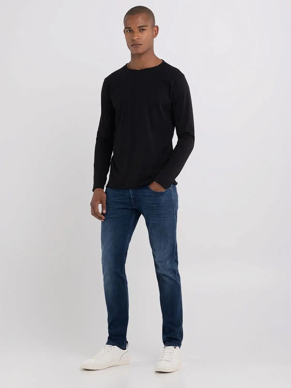 T-shirt girocollo realizzata in jersey di cotone con vestibilità regolare. Il modello a maniche lunghe si caratterizza per i profili con taglio a vivo che conferiscono un aspetto vissuto. Il capo dal look semplice e minimale è rifinito dalla stampa personalizzatasul lato della manica. 100%COTONE.